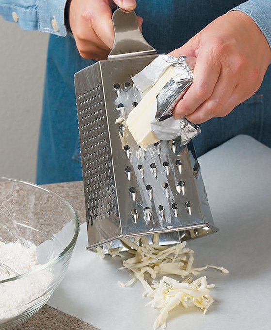 Grating butter allows it to soften quickly and evenly, making it ideal for recipes requiring softened butter without waiting for it to come to room temperature. Grated butter easily incorporates into dry ingredients, ensuring a more consistent texture in baked goods.